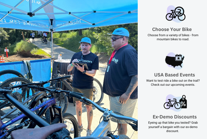 With BikesOnline, you can try before you buy - whether that’s at our showroom with a range of demo bikes ready to ride or at one of the many cycling events we attend throughout the year. It’s your chance to test top models in real conditions, ask questions, and find the perfect fit before making a decision.